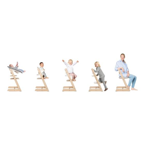 Mit dem Treppenhochstuhl Tripp Trapp von Stokke sitzen Kinder auf selbstverständliche Art und Weise ergonomisch. Das wohldurchdachte Design des Klassikers wächst individuell mit Deinem Kind mit und passt sich an seine Proportionen an. Mit seinem klassischen, legendären Design von Peter Opsvik ist der Tripp Trapp immer „en vogue“. Alles dabei: Dieses Set enthält außerdem das Newborn Set sowie das Baby Set2. So könnt Ihr den Hochstuhl bereits ab der Geburt verwenden. Material: Stuhl: europäisches Buchenholz (lackiert); Newborn Set: Schale: Kunststoff; Textilbezug: 80 % Polyester, 20 % Baumwolle; Füllung: 100 % Polyester; Baby Set2: robuster, abwaschbarer Kunststoff Verstellbarkeit: Stuhl mit höhen- und tiefenverstellbare Sitz- und Fußplatte; Newborn Set mit 2 Positionen Maße: Stuhl 79(H) x 46(B) x 49(T) cm Gewicht: Stuhl 7 kg Altersempfehlung & Langzeitnutzen: mit Newborn Set ab Geburt bis max. 9 kg, mit Baby Set2 ab ca. 6 Monaten bis max. 15 kg, ohne Zubehör ab 3 Jahren bis ins Erwachsenenalter (max. 136 kg) Lieferumfang: Treppenhochstuhl Tripp Trapp (inkl. Sitz- und Fußplatte), Newborn Set (inkl. Polster, 5-Punkt-Sicherheitsgurt mit Gurtpolster, Spielzeughalter, extralangen Bodengleitern, Textilset), Baby Set2 (inkl. Rückenlehne, Bügel, Gurt im Schritt, 2 Bodengleiter) Kommunikation auf Augenhöhe Preisgekrönt und seit 1972 absolut überzeugend: Mit dem Treppenhochstuhl Tripp Trapp nimmt der Nachwuchs direkt am Geschehen des Familientischs teil. Das Kind kommuniziert auf Augenhöhe mit den Erwachsenen und schult seine sprachlichen und sozialen Kompetenzen. Ob beim Essen, Malen oder Basteln – das Kleine ist immer dabei und genießt die Gesellschaft der Großen Funktionales Design für gesundes Sitzen Sowohl Sitz- als auch Fußplatte des Stuhls sind flexibel in der Höhe und Tiefe verstellbar. Unabhängig vom Alter und der Körpergröße des Kindes wird so eine nahezu perfekte Sitzposition möglich. Sind die Abstände zwischen Lehne, Sitzfläche und Fußplatte optimal eingestellt, sitzt das Kind entspannt. Der untere Rücken wird unterstützt, die Kniekehlen sind frei und die Unterarme liegen locker auf der Tischplatte. Die Füße können aufgestellt werden, sodass das Körpergewicht verlagert werden kann. Bewegung am Tisch ist durchaus erlaubt. Nur wer dynamisch sitzt, sitzt gesund und so bequem, dass er sich auf das Erlernen neuer Fertigkeiten konzentrieren kann. Sitz- und Fußplatte lassen sich unkompliziert separat voneinander einstellen. So wächst der Hochstuhl individuell im Tempo des Kindes bis ins Erwachsenenalter mit. Das massive Buchenholz trägt problemlos bis zu 136 Kilogramm. Nachhaltig und verantwortungsbewusst produziert Gemäß der Firmenphilosophie ist der Treppenhochstuhl ausschließlich aus biologisch abbaubaren und besonders umweltverträglichen Materialien produziert. Das europäische Buchenholz erweist sich als strapazierfähig und langlebig. Der verwendete Lack ist wasserbasiert und frei von Bisphenol und Phtalaten. Bei Bedarf lässt sich das lackierte Holz unkompliziert mit einem feuchten Tuch reinigen. Newborn Set – ab Geburt Mit dem Newborn Set von Stokke ist es möglich, das Neugeborene mit am Esstisch zu haben. Die praktische Hochstuhlerweiterung ist dazu gedacht, den Tripp Trapp bereits vom ersten Lebenstag an zu nutzen. Mit zwei verstellbaren Positionen bietet das Newborn Set immer maximalen Komfort für Dein Baby. Das Newborn Set lässt sich kinderleicht und ganz ohne Werkzeug auf dem Tripp Trapp Hochstuhl befestigen. Damit die Sicherheit des Sprösslings gewährleistet ist, gibt es an der Schale eine Anzeige, die beim korrekten Einrasten in den Kinderstuhl von Rot auf Grün wechselt. Mitgelieferte extralange Bodengleiter verlängern die Füße des Hochstuhls und tragen zu erhöhter Stabilität des Stuhls bei. Der integrierte 5-Punkt-Gurt mit schützendem Gurtpolster sorgt ebenfalls für Sicherheit, während der Spielzeugaufhänger den Nachwuchs bespaßt und die Motorik fördert. Die behagliche, nestähnliche Umgebung wird Dein Baby sicher genießen. Die Schale ist perforiert, um eine optimale Belüftung zu gewährleisten. Ganz nebenbei fördert das Newborn Set die Interaktion und eine starke Bindung zur ganzen Familie. Neu: Die Schale lässt sich mit nur einer Hand in zwei unterschiedliche Positionen bringen (Neigungswinkel 38). Zusätzlich sorgt ein optimaler Halt für die Beine für noch mehr Komfort Baby Set2 – ab dem Sitzalter Zwischen dem 6. und 9. Monat fängt das Baby an, alleine zu sitzen. Ab diesem Zeitpunkt hilft das Baby Set2 Deinem Kleinen, bequem und sicher im Tripp Trapp mit am Familientisch zu sitzen. Die hohe Rückenlehne lässt sich einfach auf den Hochstuhl aufstecken, der Bügel passt in die Aussparung des Sitzbodens – so bietet das Baby Set2 Deinem Kleinen nicht nur sicheren Halt, sondern es lernt auch, richtig zu sitzen. Die 2 extralangen Bodengleiter geben an die Füße gesteckt dem Hochstuhl mehr Stabilität. Das Baby Set2 besteht aus umweltfreundlichem, robustem Kunststoff, der recycelbar und für Kinder sicher ist. Bei Bedarf kannst Du das Baby Set2 mit einem feuchten Tuch abwischen. Hinweise Eine Rücksendung einzelner Bundle-Bestandteile ist möglich. Bei der Rückerstattung wird hierbei automatisch der Preisvorteil des Bundles verrechnet. Es kann sein, dass die Lieferung in mehreren Paketen erfolgt. Bei einer Lieferung in mehreren Paketen kann es zu unterschiedlichen Lieferterminen kommen. Hier erfährst Du mehr über den Stokke Tripp Trapp.